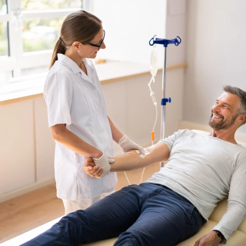 IV infusion therapy delivers vitamins, minerals, hydration, and nutrients directly into your bloodstream via a quick intravenous drip, bypassing digestion for 100% absorption.